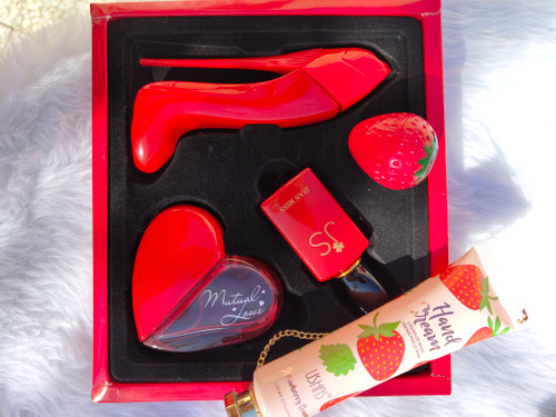 پک عطر جین میس+مرطوب کننده ی توت فرنگی+ بالم لب توت فرنگی